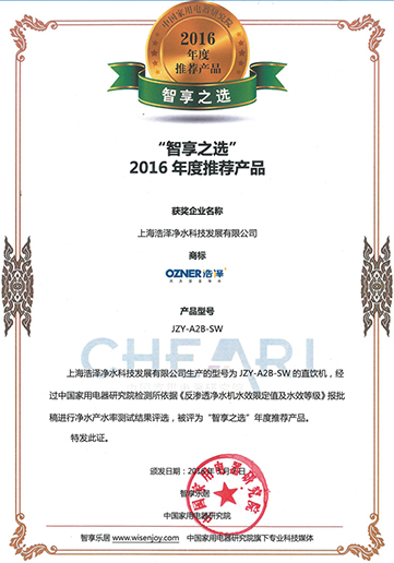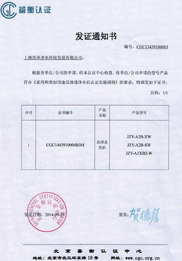 浩凈澤環(huán)保設(shè)備 中國(guó)凈水器十大品牌證書(shū)