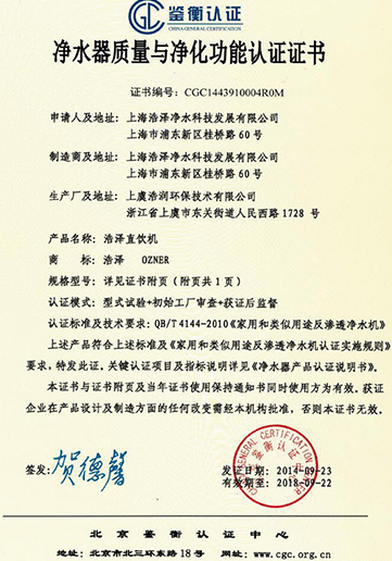 浩凈澤環(huán)保設(shè)備 凈水機(jī)性能測(cè)試方法行業(yè)標(biāo)準(zhǔn)